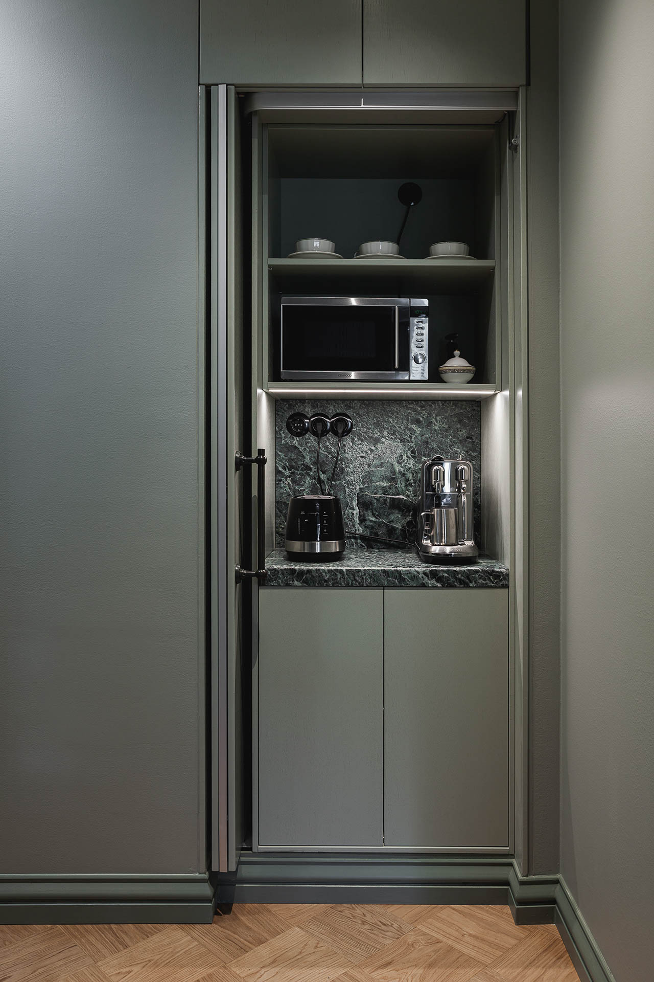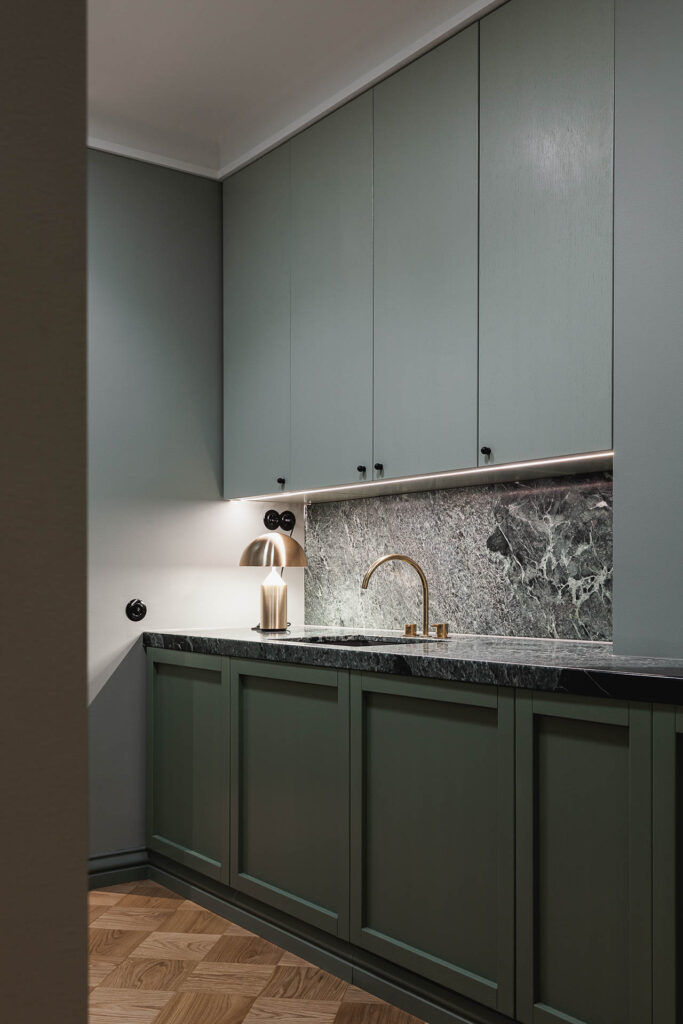 This residence in southern Helsinki was designed in 2018–2019. Having previously refurbished another apartment for the client in the same neighborhood, we seamlessly continued the design process—already attuned to their aesthetic and functional preferences.