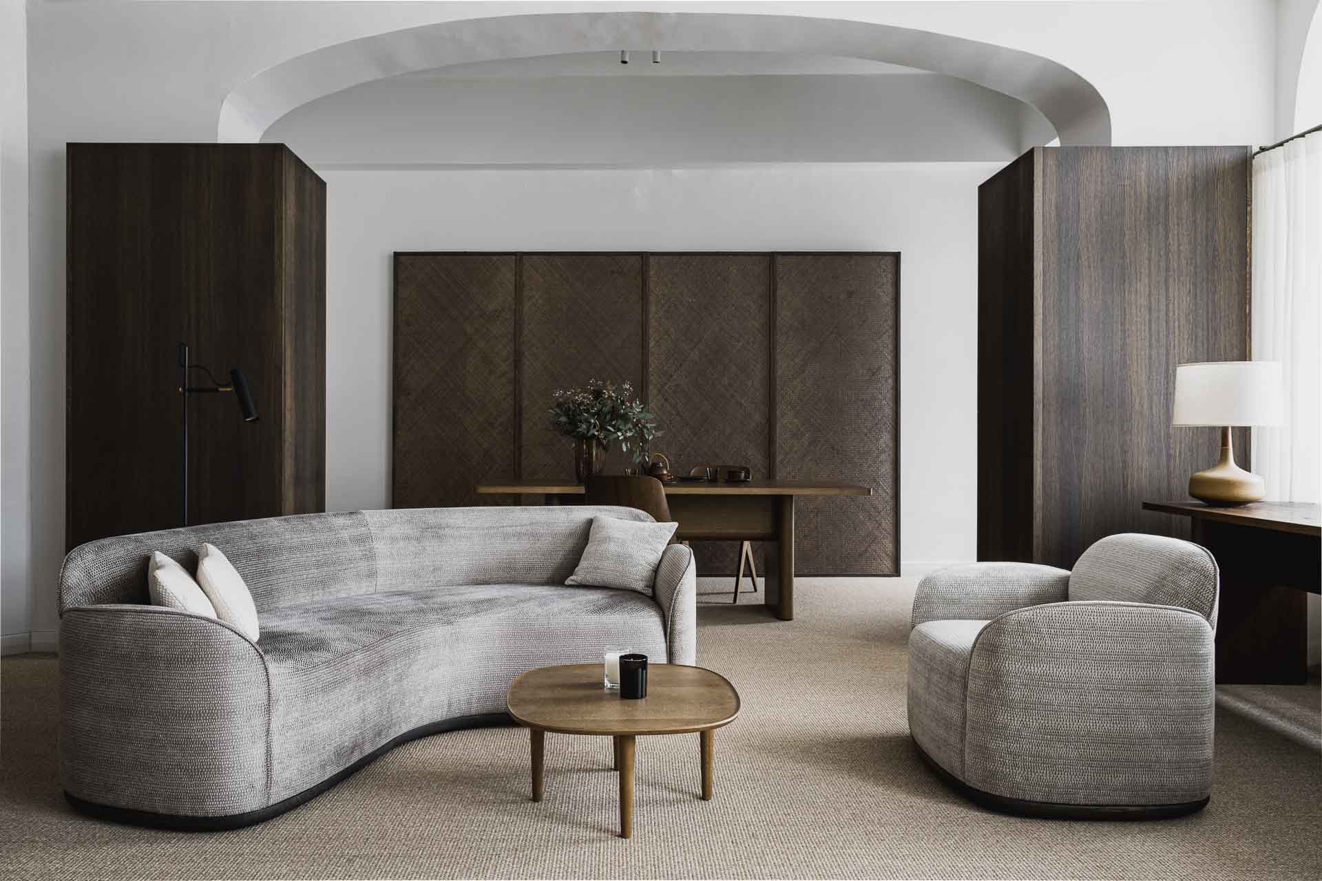 The different characteristics of the Unio furniture family are expressed through its shape and materials. The secure and upright look invites one to sit with confidence, while the tactile nature of textiles and rounded shapes suggest its sophisticated comfort. The renowned lifestyle magazine Monocle chose the Unio Collection as the winner of the Warmest Design prize at the Monocle Design Awards 2022.